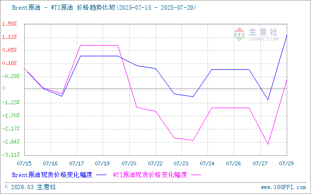 進(jìn)入本輪計(jì)價(jià)周期,國際油價(jià)行情震蕩為主,截止28日,美國WTI原油期貨主力合約結(jié)算價(jià)報(bào)66.71美元/桶,布倫特原油期貨主力合約結(jié)算價(jià)報(bào)70.04美元/桶。本輪調(diào)價(jià)周期內(nèi),原油價(jià)格行情震蕩為主,一方面OPEC+大概率將在9月底之前完成220萬桶/日的增產(chǎn)計(jì)劃,加之美國和日本達(dá)成貿(mào)易協(xié)議,受此消息影響,國際油市走勢有所回落;另一方面市場對美國和歐洲關(guān)稅談判的擔(dān)憂情緒仍存,中東問題、歐洲局勢擾動等因素影響,原油行情維持震蕩走勢。截止29日,第十個(gè)工作日原油品種變化率為-0.65%,對應(yīng)國內(nèi)汽柴油預(yù)計(jì)下調(diào)25元/噸,未觸及國際規(guī)定調(diào)整紅線,本輪成品油零售價(jià)暫不調(diào)整。