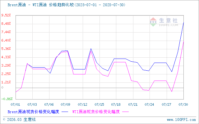 生意社Brent-WTI原油價(jià)格走勢(shì)比較圖: