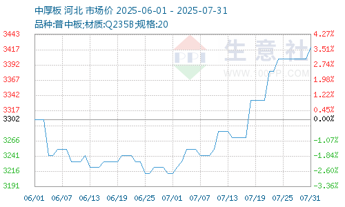 回顧7月份,全國大部持續(xù)高溫炙熱,局部暴雨洪澇災(zāi)害,戶外施工進度放緩,淡季需求特征明顯,然而,多部委相繼發(fā)聲“反內(nèi)卷”,原料端價格持續(xù)推高,黑色品種深受關(guān)注,盤面資金紛至沓來,期貨多頭強勁拉升,提振市場情緒,各地報價累計大漲。據(jù)生意社商品行情分析系統(tǒng),普中板(材質(zhì):Q235B;規(guī)格:20)月初(7月1日)價格為3212元/噸,月末(7月31日)價格為3422元/噸,較月初漲6.54%。