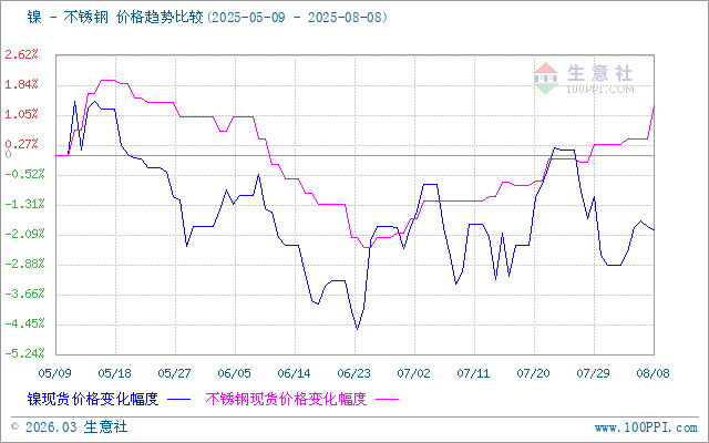 據(jù)生意社價(jià)差分析工具顯示,鎳和不銹鋼價(jià)格基本相似,不銹鋼價(jià)格漲跌相對(duì)鎳價(jià)格有所滯后。