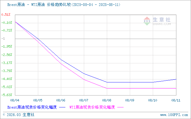 生意社Brent-WTI原油價(jià)格走勢比較圖: