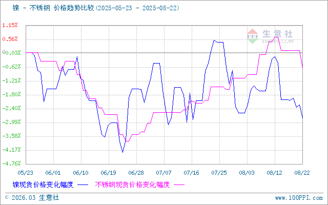 據(jù)生意社價(jià)差分析工具顯示,鎳和不銹鋼價(jià)格基本相似,近期都小幅下跌。