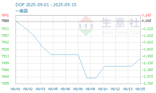 據(jù)生意社商品行情分析系統(tǒng),截止9月15日,DOP價(jià)格7509.16元/噸,較9月10日DOP價(jià)格7467.50元/噸震蕩上漲,漲幅0.56%。原材料異辛醇、苯酐價(jià)格震蕩下跌,DOP成本止跌,DOP下跌壓力減弱;本周DOP企業(yè)開工負(fù)荷提升,DOP供給增加;下游需求難有改善,對(duì)DOP采購詢盤意向平平,DOP需求成交好轉(zhuǎn)有限。成本止跌,增塑劑價(jià)格止跌反彈。
