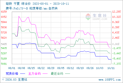 延續(xù)節(jié)前弱勢,節(jié)后歸來,硅鐵期貨行情繼續(xù)震蕩下行,部分采購商盤面采購的積極性有增,交割庫低價(jià)貨物流出明顯對工廠出貨造成不利影響,再加之部分地區(qū)最新結(jié)算電價(jià)傳出下調(diào)消息、節(jié)后復(fù)市,市場需求不及之前預(yù)期,及假期間部分硅廠有庫存累積均對整體行情形成壓制,近日業(yè)內(nèi)部分信心稍顯不足,部分實(shí)際成交價(jià)格有所松動。據(jù)生意社商品行情分析系統(tǒng),10月11日硅鐵(牌號:FeSi75~B;粒度等級/mm:自然塊)寧夏地區(qū)市場報(bào)價(jià)在5100-5280/噸,市場均價(jià)5171元/噸,較節(jié)前降2.84%。