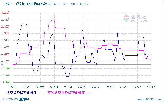 據(jù)生意社價差分析工具顯示,鎳和不銹鋼價格基本相似,近期鎳價不銹鋼價格都有下跌。