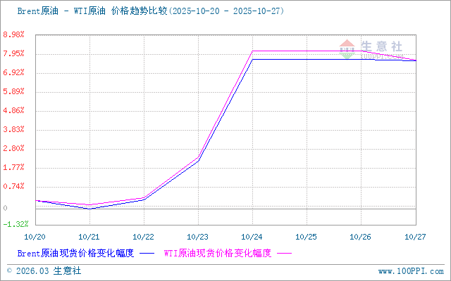 生意社Brent-WTI原油價(jià)格走勢(shì)比較圖: