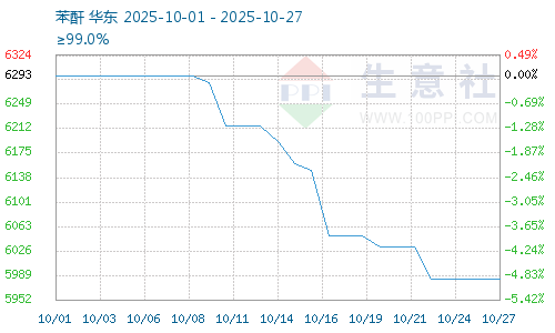 據(jù)生意社商品行情分析系統(tǒng),截止10月27日鄰法苯酐報價為5983.33元/噸,較10月20日苯酐價格6033.33元/噸震蕩下跌,跌幅0.83%。本周鄰苯價格暫穩(wěn),工業(yè)萘價格弱勢盤整,苯酐成本支撐不足,本周苯酐設(shè)備負荷小幅回升,苯酐企業(yè)開工率提升,苯酐供給充足,下游增塑劑行情震蕩下跌,增塑劑企業(yè)設(shè)備開工負荷下降,苯酐需求支撐減弱。成本暫穩(wěn)需求疲軟,本周苯酐價格震蕩下跌。