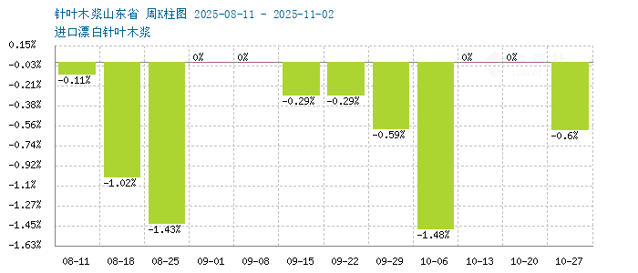 據(jù)生意社商品行情分析系統(tǒng)監(jiān)測(cè):本周針葉木漿價(jià)格僅小幅上探,闊葉木漿價(jià)格保持平穩(wěn)運(yùn)行。11月6日針葉木漿山東地區(qū)市場(chǎng)均價(jià)為5533.33元/噸,與11月1日均價(jià)相比上漲了0.3%。11月6日闊葉木漿山東地區(qū)市場(chǎng)均價(jià)為4250元/噸,與11月1日均價(jià)相比保持平穩(wěn)。