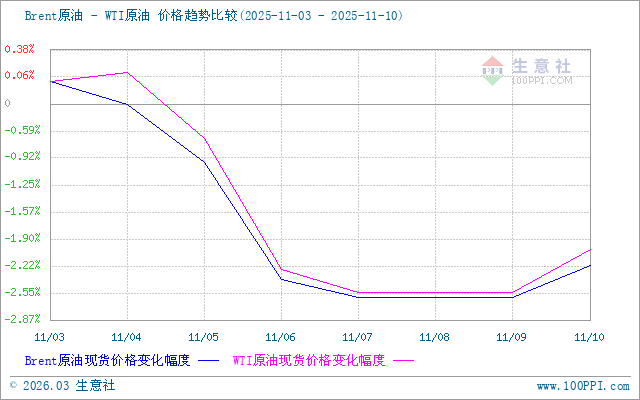 生意社Brent-WTI原油價(jià)格走勢(shì)比較圖: