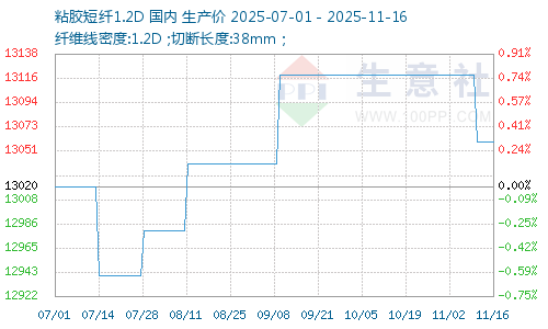 據(jù)生意社商品行情分析系統(tǒng)顯示,上周(2025年11月10—16日),粘膠短纖市場(chǎng)價(jià)格小幅下跌,截止11月16日,粘膠短纖市場(chǎng)均價(jià)為13060元/噸,與前期價(jià)格下跌60元/噸,周跌幅0.46%。