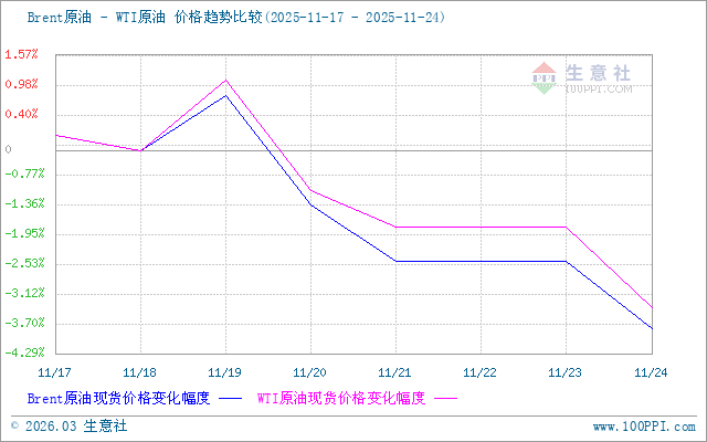 生意社Brent-WTI原油價格走勢比較圖: