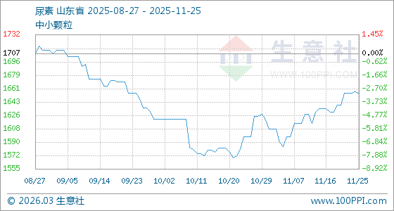 三聚氰胺的主要原料是尿素。從市場數(shù)據(jù)看11月25日,生意社尿素基準(zhǔn)價(jià)為1657.50元/噸,與本月初(1607.50元/噸)相比,上漲了3.11%。整體行情已出現(xiàn)回暖跡象。原料成本的企穩(wěn),為三聚氰胺的價(jià)格提供了一定的底部支撐。