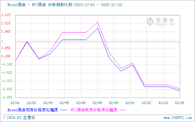 生意社Brent-WTI原油價格走勢比較圖: