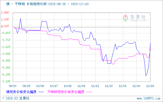 據(jù)生意社價(jià)差分析工具顯示,鎳和不銹鋼價(jià)格走勢(shì)相似,近期整體走勢(shì)上漲。