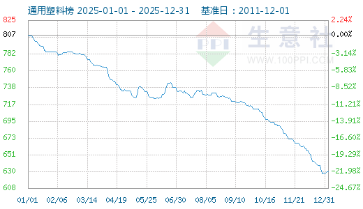 據(jù)生意社商品行情分析系統(tǒng)顯示,截止2025年底,國內(nèi)五大通用塑料行情全線下跌,價格較年初有顯著跌幅。當前通用塑料指數(shù)為631點,跌破2020年04月06日的五年低點653點。雖然傳統(tǒng)塑料產(chǎn)品消費的深耕是國內(nèi)通用塑料的重要增長點,但2025年度塑料價格行情的表現(xiàn)也反映傳統(tǒng)領(lǐng)域需求彈性的不足。同時國內(nèi)大基數(shù)產(chǎn)能的供應(yīng)環(huán)境方興未艾,而消費增速的滯后很可能致階段性的單價繼續(xù)探底。故預(yù)計2026年行情難現(xiàn)顯著的修復(fù)行情,價格位置仍將持續(xù)處于相對低位。