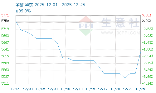 據(jù)生意社商品行情分析系統(tǒng),截止12月25日鄰法苯酐報(bào)價(jià)為5633.33元/噸,較12月22日苯酐價(jià)格5533.33元/噸反彈上漲,漲幅1.81%。本周苯酐止跌反彈,原材料鄰苯價(jià)格暫穩(wěn),成本趨穩(wěn),苯酐企業(yè)開工率提升,苯酐供給充足;下游DOP企業(yè)開工負(fù)荷小幅上升,苯酐需求支撐加大。成本支撐開工提升,加之需求支撐加大,苯酐下跌壓力減弱。