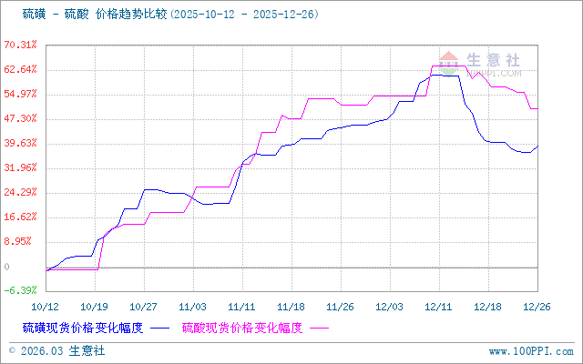 需求端的疲軟態(tài)勢(shì)進(jìn)一步加劇了局部市場(chǎng)的下行壓力。作為硫酸最大下游領(lǐng)域,磷肥行業(yè)當(dāng)前采購(gòu)以剛需為主,隨著冬儲(chǔ)備肥進(jìn)入尾聲,需求支撐預(yù)期下滑;同時(shí),鈦白粉等化工行業(yè)新增檢修企業(yè)數(shù)量增加,開(kāi)工率有所回落,對(duì)硫酸的采購(gòu)積極性下降。以山東市場(chǎng)為例,下游需求走弱導(dǎo)致酸廠出貨壓力增加,市場(chǎng)成交氣氛偏淡,企業(yè)為促進(jìn)出貨主動(dòng)下調(diào)報(bào)價(jià),形成局部?jī)r(jià)格下行態(tài)勢(shì);云南地區(qū)則因酸價(jià)低于周邊水平,雖外部流入訂單有所增加,但整體成交重心仍呈下行趨勢(shì)。