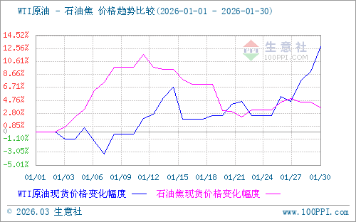 據(jù)生意社商品分析系統(tǒng)顯示,1月份地?zé)捠徒剐星橄葷q后跌,整體小幅上漲,國內(nèi)主要地?zé)拸S家石油焦中硫產(chǎn)品主流均價(jià)1月30日為2691.75元/噸,較1月1日為2598.25元/噸,整體上漲3.6%。