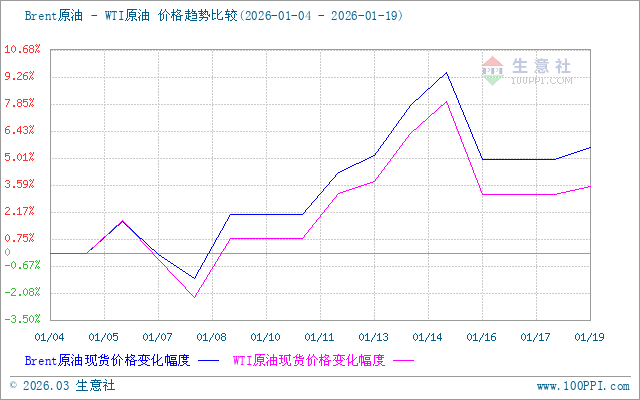 進(jìn)入本輪計(jì)價(jià)周期,國(guó)際油價(jià)行情走勢(shì)先跌后漲,截止19日,美國(guó)WTI原油期貨市場(chǎng)休市,布倫特原油期貨3月合約結(jié)算價(jià)報(bào)63.94美元/桶。本輪調(diào)價(jià)周期內(nèi),原油價(jià)格行情先跌后漲,一方面地緣局勢(shì)緩和風(fēng)險(xiǎn)溢價(jià)快速消解,地緣因素是本次油價(jià)漲跌反轉(zhuǎn)的核心推手,市場(chǎng)對(duì)伊朗供應(yīng)中斷的擔(dān)憂從升溫轉(zhuǎn)向緩和,前期積累的避險(xiǎn)買盤集中撤離,加之委內(nèi)瑞拉局勢(shì)添利空,只是原油市場(chǎng)走勢(shì)下滑,另一方面美國(guó)對(duì)伊朗的制裁持續(xù)加碼,疊加伊朗石油出口相關(guān)產(chǎn)業(yè)鏈?zhǔn)苤撇糜绊懀磥?lái)伊朗原油供應(yīng)量或進(jìn)一步下滑,形成供應(yīng)端支撐。盡管市場(chǎng)對(duì)委內(nèi)瑞拉出口增量有預(yù)期,但該國(guó)石油產(chǎn)業(yè)基礎(chǔ)設(shè)施薄弱,出口恢復(fù)進(jìn)程緩慢,利好消息支撐國(guó)際油價(jià)上漲,整體來(lái)看本周期原油走勢(shì)上漲。截止20日,第十個(gè)工作日原油品種變化率為1.80%,對(duì)應(yīng)國(guó)內(nèi)油價(jià)每噸汽油上調(diào)85、柴油上調(diào)85元,折合每升89#0.06元、92#0.06元、95#0.07元、0#0.07元。