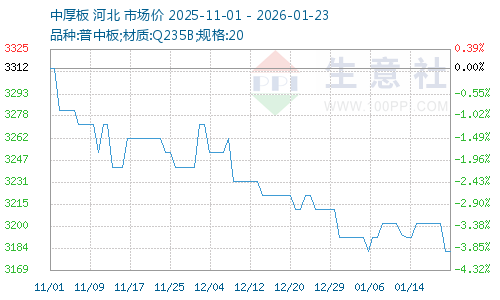 國(guó)內(nèi)中厚板市場(chǎng)整體呈現(xiàn)小幅下行態(tài)勢(shì),期貨盤(pán)面震蕩走弱對(duì)現(xiàn)貨市場(chǎng)形成拖拽,貿(mào)易商為回籠資金讓利出貨,價(jià)格重心小幅下移,整體波動(dòng)溫和且區(qū)域分化特征延續(xù)。據(jù)生意社商品行情分析系統(tǒng),普中板(材質(zhì):Q235B;規(guī)格:20)1月23日價(jià)格為3182元/噸,較周一降0.62%。