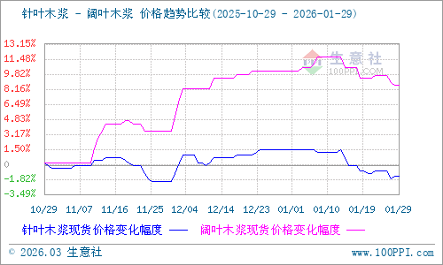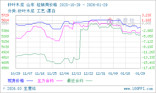 據(jù)生意社商品行情分析系統(tǒng)監(jiān)測:2026年1月針葉木漿和闊葉木漿價格整體呈現(xiàn)趨弱態(tài)勢。1月29日針葉木漿山東地區(qū)市場均價為5466.67元/噸,與1月1日均價相比下降了2.96%。1月29日闊葉木漿山東地區(qū)市場均價為4616.67元/噸,與1月1日均價相比下降了1.42%。