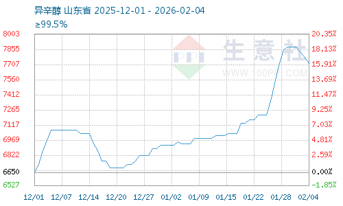 據(jù)生意社商品行情分析系統(tǒng),截止1月31日異辛醇報價7880元/噸,較1月1日異辛醇價格6916.67元/噸大幅上漲,漲幅13.93%;2月4日異辛醇價格7716.67元/噸,較1月31日異辛醇價格7880元/噸下跌,跌幅2.07%。1月異辛醇企業(yè)裝置開工負荷提升至9.5成,異辛醇供給充足,下旬異辛醇部分企業(yè)檢修,異辛醇企業(yè)開工率降至9成;丙烯價格大幅上漲,異辛醇成本支撐加大。1月異辛醇價格大幅上漲。2月增塑劑價格高位回落,丙烯價格回落,成本下降需求回落,2月異辛醇價格震蕩下跌。