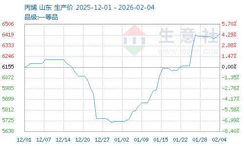 據(jù)生意社商品行情分析系統(tǒng),截止1月31日,丙烯價格6404.33元/噸,較1月1日丙烯價格5717.67元/噸大幅上漲,漲幅12.01%;2月2日丙烯價格6391元/噸,較1月27日丙烯價格6421元/噸震蕩下跌,跌幅0.47%。1月丙烯價格大幅上漲,原材料價格支撐加大,異辛醇成本上漲,異辛醇價格上漲支撐加大,下旬丙烯價格回落,異辛醇成本下降,異辛醇上漲支撐減弱。