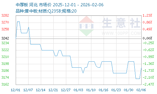 國內(nèi)中厚板市場整體小幅趨弱,價格波動幅度溫和,核心受下游需求停擺及鋼廠停產(chǎn)影響,貿(mào)易商以穩(wěn)價出貨為主,讓利空間有限。據(jù)生意社商品行情分析系統(tǒng),普中板(材質(zhì):Q235B;規(guī)格:20)2月6日價格為3196元/噸,較周一降0.31%。