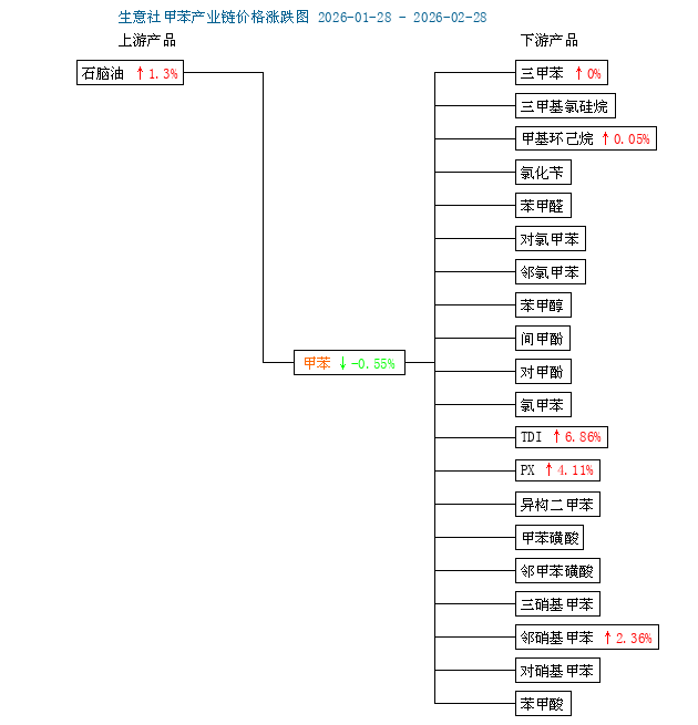 | 生意社:2月28日華南地區(qū)甲苯市場(chǎng)交易情況 2026-02-28 13:51 | |