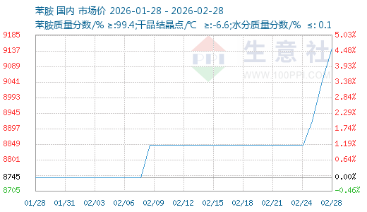 | 生意社:2月28日山東金嶺苯胺最新價(jià)格 2026-02-28 09:15 | |