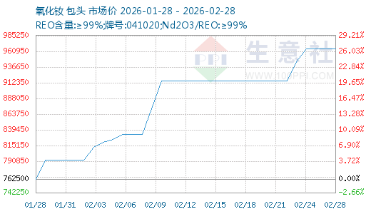 | 生意社:2月26日國內鐠釹系價格走勢上漲 2026-02-26 14:04 | |