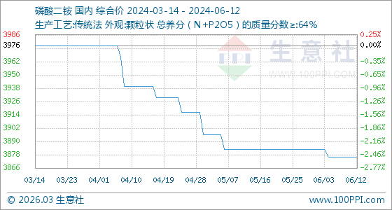 6月12日,生意社磷酸二銨基準(zhǔn)價為3876.67元/噸,與本月初(3883.33元/噸)相比,下降了-0.17%。