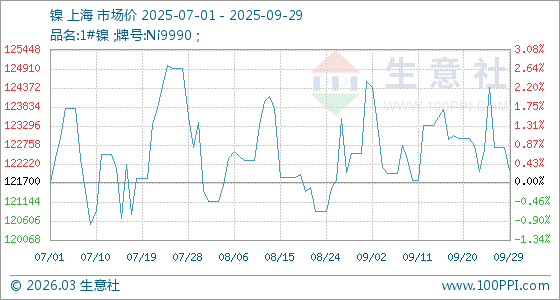 9月29日,生意社鎳基準(zhǔn)價為122700.00元/噸,與本月初(122516.67元/噸)相比,上漲了0.15%。