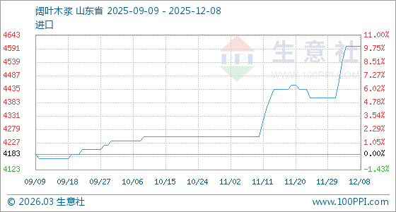 12月8日,生意社闊葉木漿基準價為4600.00元/噸,與本月初(4400.00元/噸)相比,上漲了4.55%。