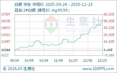 2025年12月23日白銀市場(chǎng)早盤報(bào)價(jià)16320元/千克,較本月初(12月1日)白銀市場(chǎng)均價(jià)13414元/千克,上漲21.66%;較年初(1月1日)白銀市場(chǎng)均價(jià)7450元/千克,上漲119.06%。此次大漲是工業(yè)需求、供需格局、金融政策及資金流入等多方面因素共振的結(jié)果。后市來看,白銀價(jià)格短期可能面臨高位震蕩與回調(diào)風(fēng)險(xiǎn),中長期則因基本面支撐大概率維持上行趨勢(shì)。[詳細(xì)]