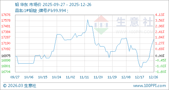 12月26日,生意社鉛基準(zhǔn)價為17195.00元/噸,與本月初(17055.00元/噸)相比,上漲了0.82%。