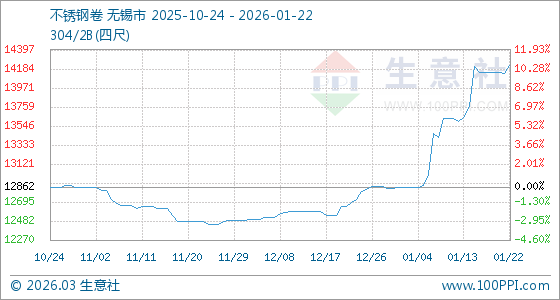 1月22日,生意社不銹鋼卷基準(zhǔn)價(jià)為14130.00元/噸,與本月初(12855.00元/噸)相比,上漲了9.92%。