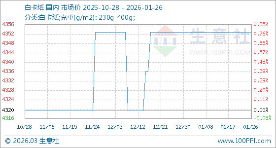 1月26日,生意社白卡紙基準價為4353.33元/噸,與本月初持平。