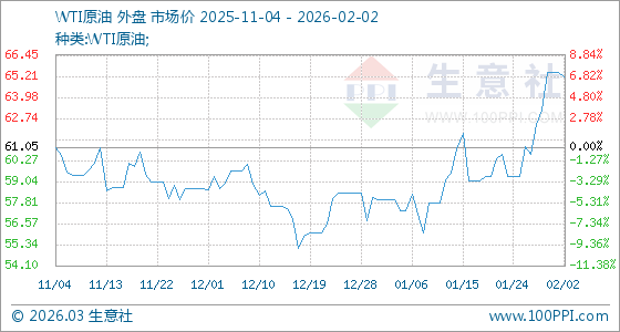 2月2日,生意社WTI原油基準價為65.42美元/桶,與本月初持平。