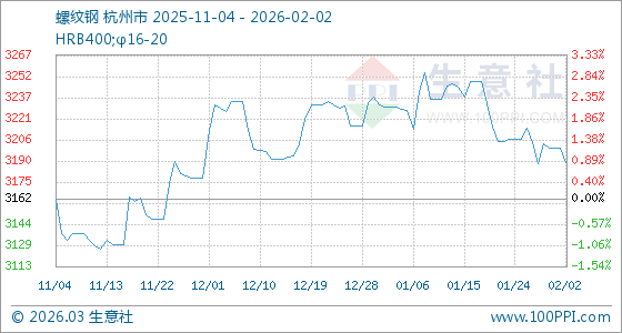 2月2日,生意社螺紋鋼基準(zhǔn)價(jià)為3200.34元/噸,與本月初持平。