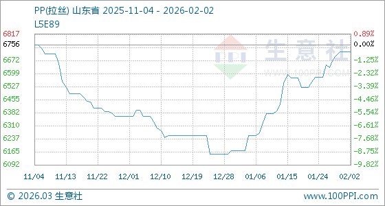 2月2日,生意社PP(拉絲)基準價為6720.00元/噸,與本月初持平。