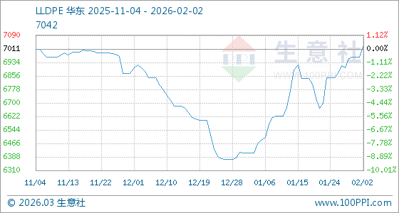 2月2日,生意社LLDPE基準(zhǔn)價(jià)為6966.67元/噸,與本月初持平。