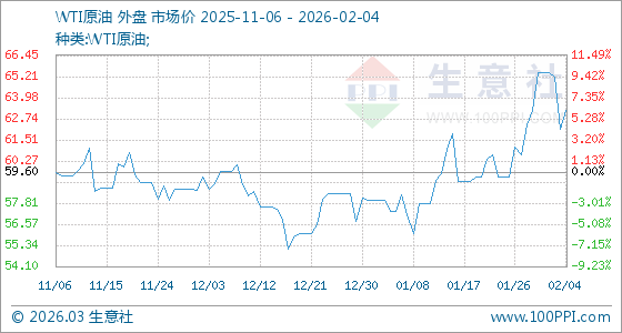 2月4日,生意社WTI原油基準(zhǔn)價(jià)為62.14美元/桶,與本月初(65.42美元/桶)相比,下降了5.01%。