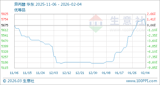 2月4日,生意社異丙醇基準(zhǔn)價(jià)為5766.66元/噸,與本月初(5733.34元/噸)相比,上漲了0.58%。