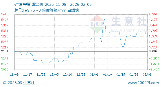 2月6日,生意社硅鐵基準(zhǔn)價(jià)為5310.00元/噸,與本月初(5324.29元/噸)相比,下降了0.27%。