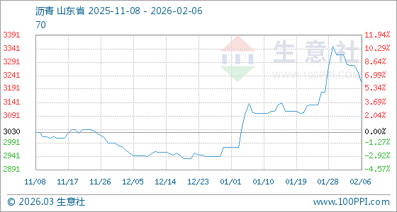 2月6日,生意社瀝青基準(zhǔn)價為3260.00元/噸,與本月初(3320.00元/噸)相比,下降了1.81%。
