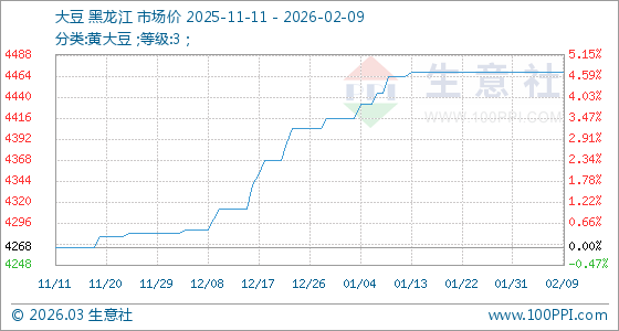 2月9日,生意社大豆基準(zhǔn)價為4468.00元/噸,與本月初持平。