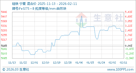 2月11日,生意社硅鐵基準(zhǔn)價(jià)為5287.14元/噸,與本月初(5324.29元/噸)相比,下降了0.7%。