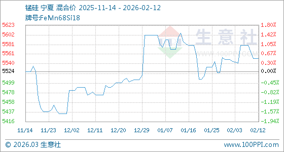 2月12日,生意社錳硅基準(zhǔn)價為5552.00元/噸,與本月初(5550.00元/噸)相比,上漲了0.04%。