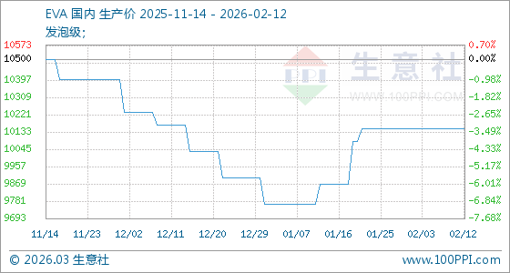 2月12日,生意社EVA基準(zhǔn)價為10150.00元/噸,與本月初持平。